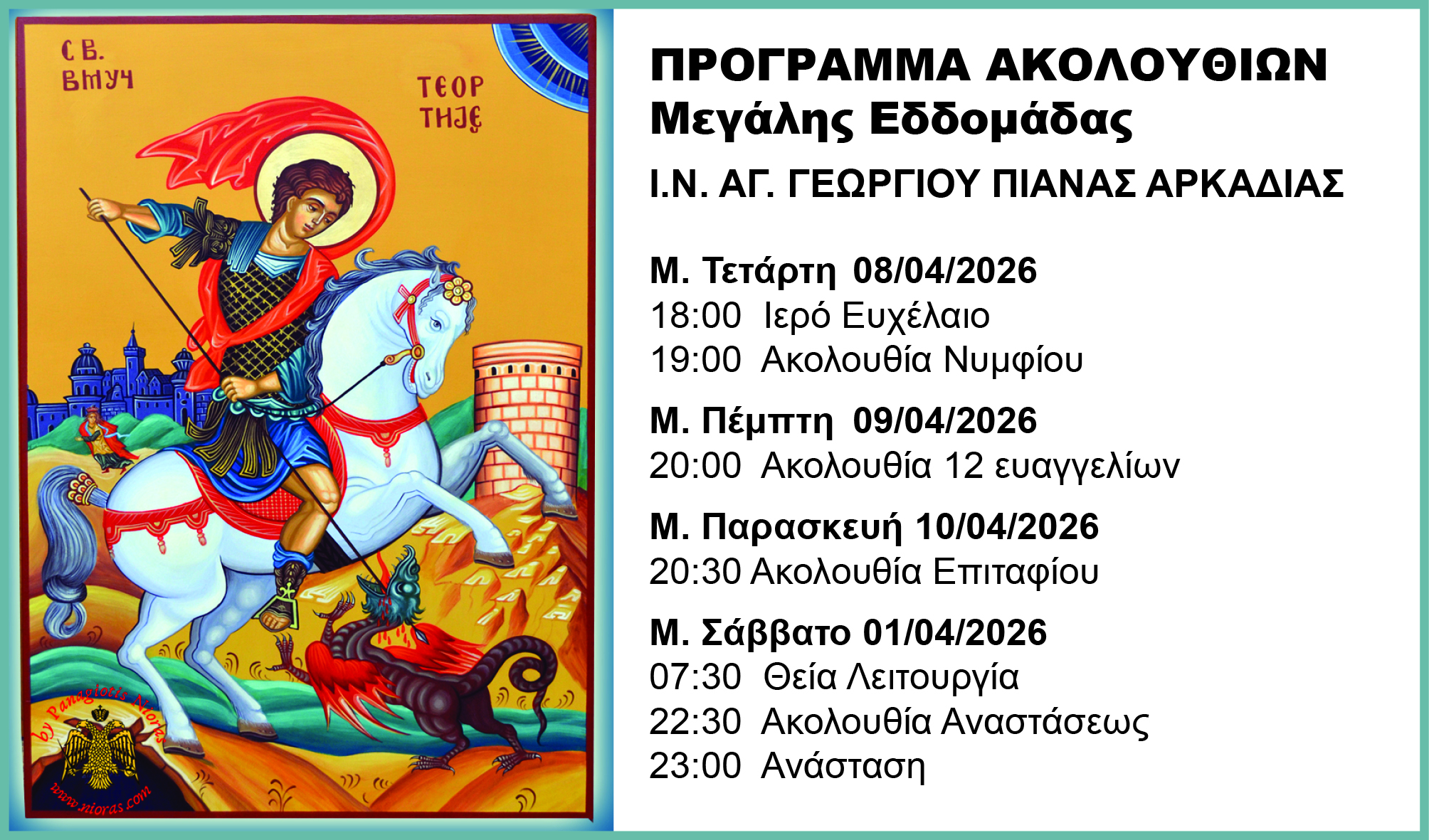 Ι.Ν. Αγ. Γεωργίου Πιάνας – Πρόγραμμα Ακολουθιών Μ. Εβδομάδας